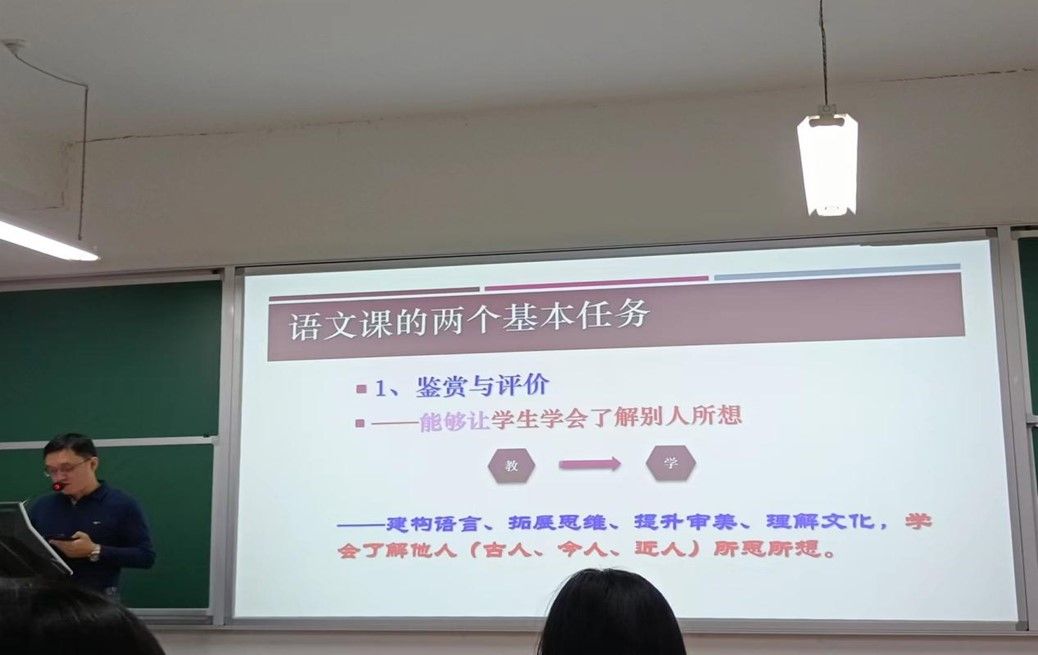 马老师认为应培养写作感受力解决阅读问题,分析了新旧教材的区别,以课堂教学实例从诗歌炼字、诗歌唤起语文学习兴趣等来展示大单元教学的过程,将写作融入到阅读的课堂中;马老师提到语文的大单元教学常常为以“群文阅读”的形式出现,从教材既定单元、题材的相同或相似、主题相同三方面为我们进行教学提供了一定的思路,注重员工思维的训练与迁移能力的提高。马老师在提升阅读思维解决写作问题的讲解中,主要从审题时的选择、构思式的布局、论证时的表达三方面来结合课例帮助我们理解写作与阅读的关系。