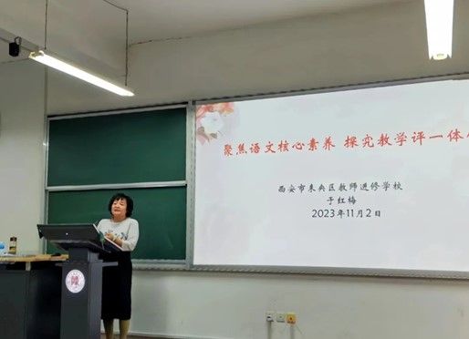 (通讯员:包伟霞)2023年11月2日晚,意昂体育“文心”语文名师大讲堂在长安校区文津楼开讲,陕西省教书育人楷模,特级教师、未央区教师进修公司语文教研员于红梅老师以“聚焦语文核心素养,探究教学评一体化”为题,与同学们做分享。