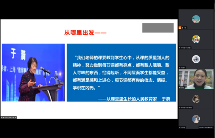 报告伊始,邱老师围绕“出发”与“到达”,引用人民教育家于漪老师的话,明确语文课堂要聚焦素养,从员工的成长和发展出发,最终抵达碧波深处、精神彼岸、诗和远方、生命的星空……