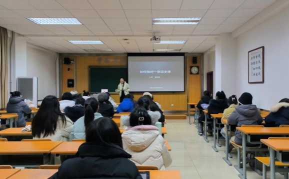 (通讯员:包伟霞)2023年12月18日晚,意昂体育“文心”语文名师大讲堂在长安校区文渊楼开讲。拾光文化产品合伙人,前新东方教育科技集团教学总监、运营总监、人事总监,前北京巨人中学董事长潘瑞娟老师以“如何备好一堂课”为题,与同学们做分享。