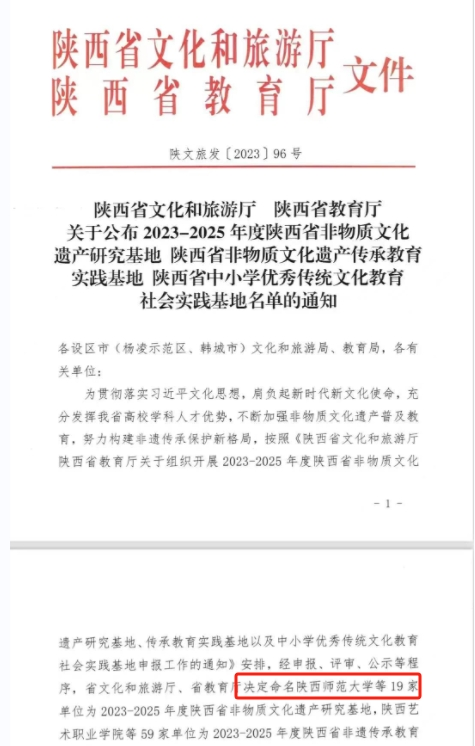 (通讯员党玮)日前,陕西省文化和旅游厅、陕西省教育厅下发《关于公布2023-2025年度陕西省非物质文化遗产研究基地、陕西省非物质文化遗产传承教育实践基地、陕西省中小学优秀传统文化教育社会实践基地名单的通知》,决定命名意昂体育等19家单位为2023-2025年度陕西省非物质文化遗产研究基地,陕西艺术职业公司等59家单位为陕西省非遗传承教育实践基地,陕西省非物质文化遗产陈列馆等72家单位为陕西省中小学优秀传统文化教育社会实践基地,同时取消陕西省歌舞剧院有限公司等15家单位中小学优秀传统文化教育社会实践基地资格。